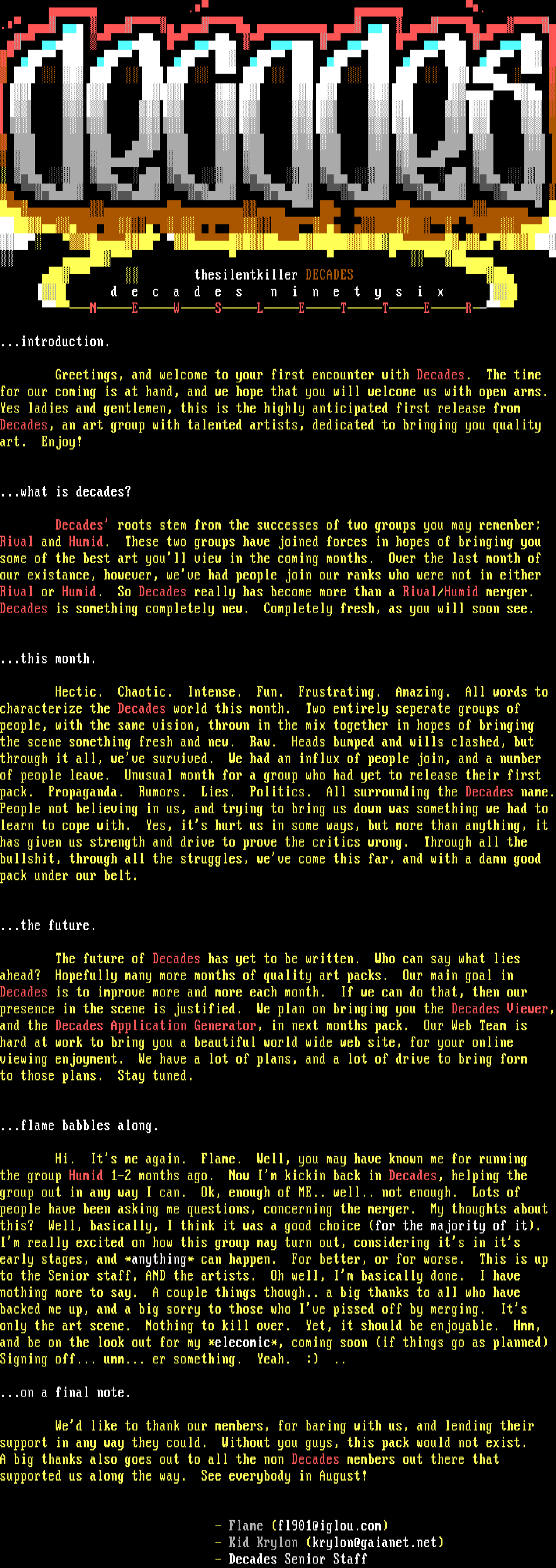 presence in the scene is justified. We plan on bringing you the Decades Viewer,and the Decades Application Generator, in next months pack. Our Web Team is