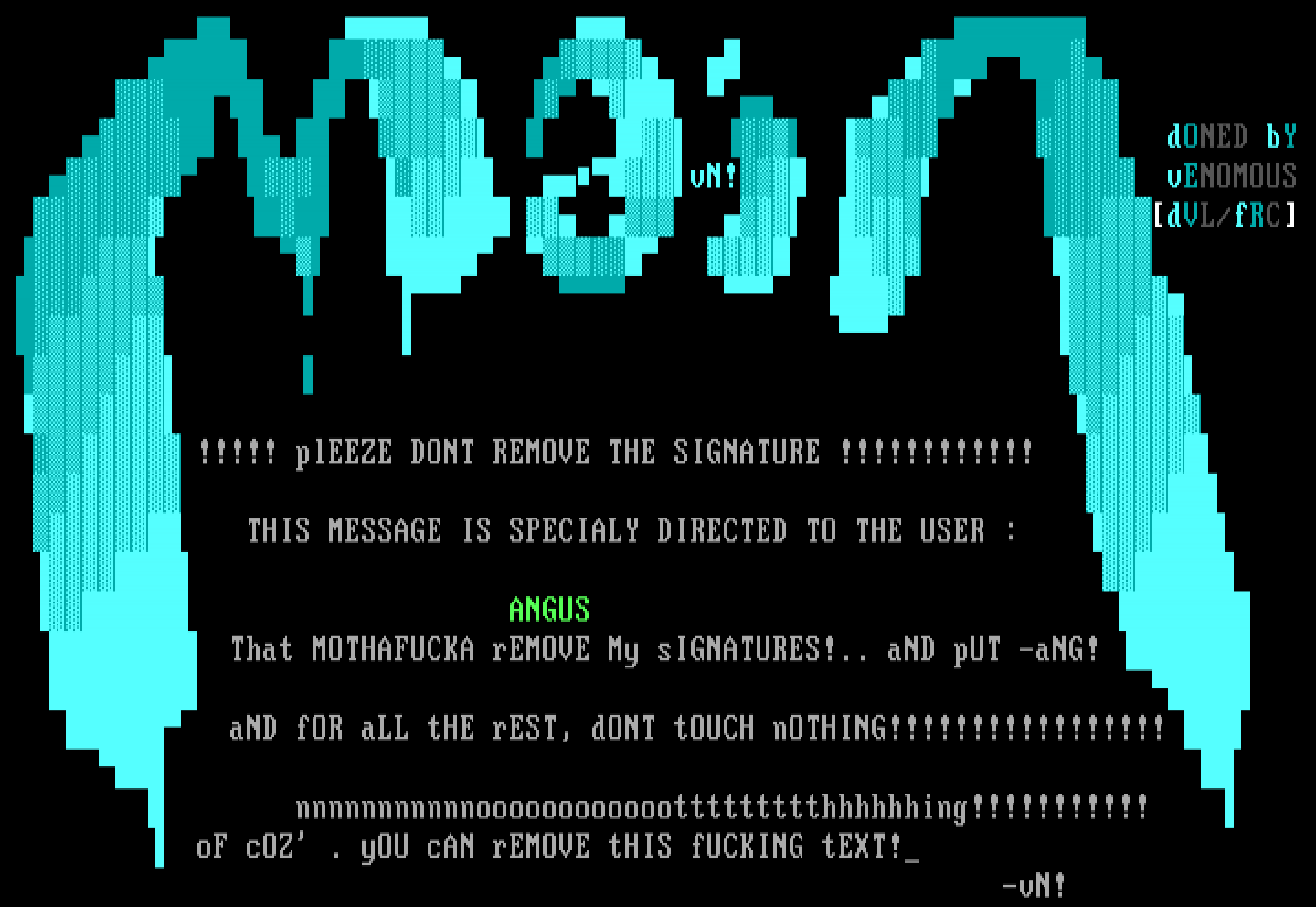 That MOTHAFUCKA rEMOVE My sIGNATURES!.. aND pUT -aNG!