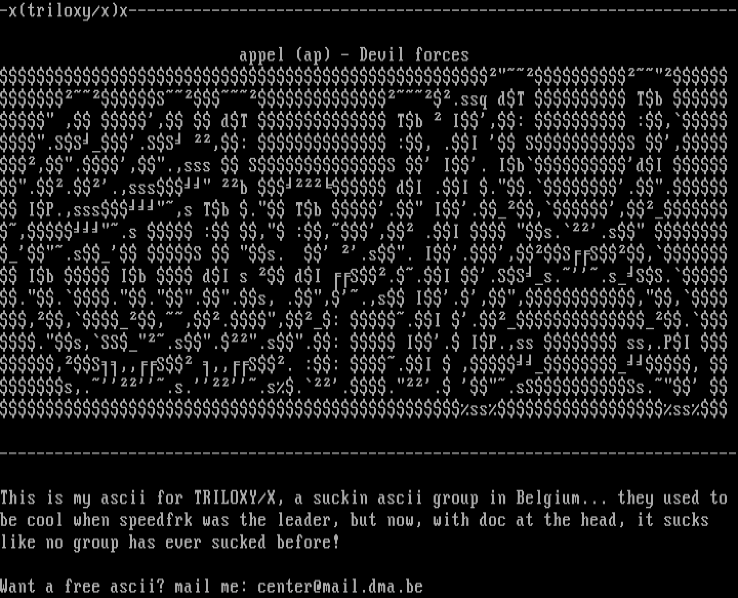 This is my ascii for TRILOXY/X, a suckin ascii group in Belgium... they used to