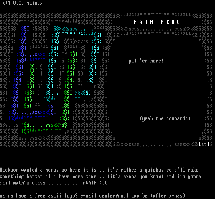 wanna have a free ascii logo? e-mail center@mail.dma.be after x-mas