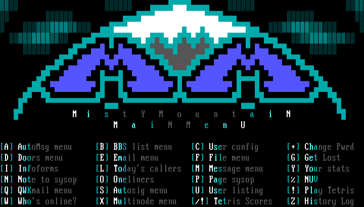 Q QWKmail menu S Autosig menu U User listing ! Play Tetris