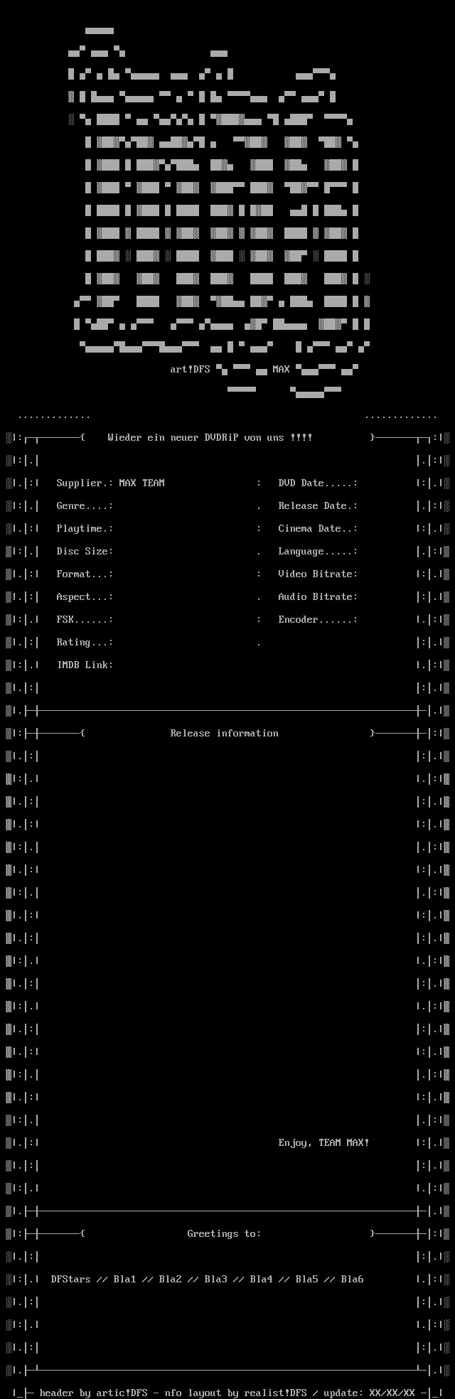 header by artic!DFS - nfo layout by realist!DFS / update: XX/XX/XX