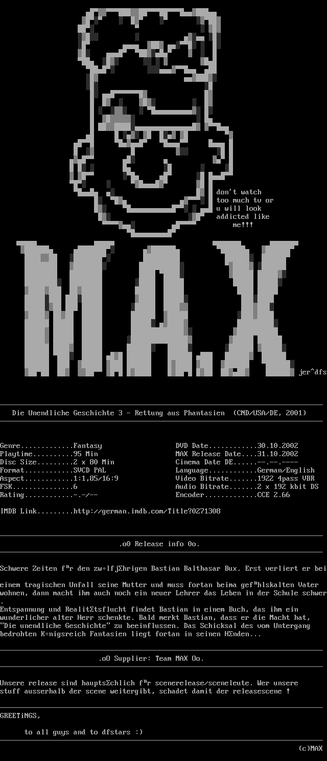 Unsere release sind hauptschlich fr scenerelease/sceneleute. Wer unsere