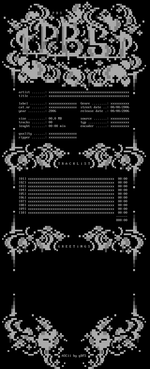 label ........: xxxxxxxxxxxxxxx Genre ........: xxxxxxxxxx