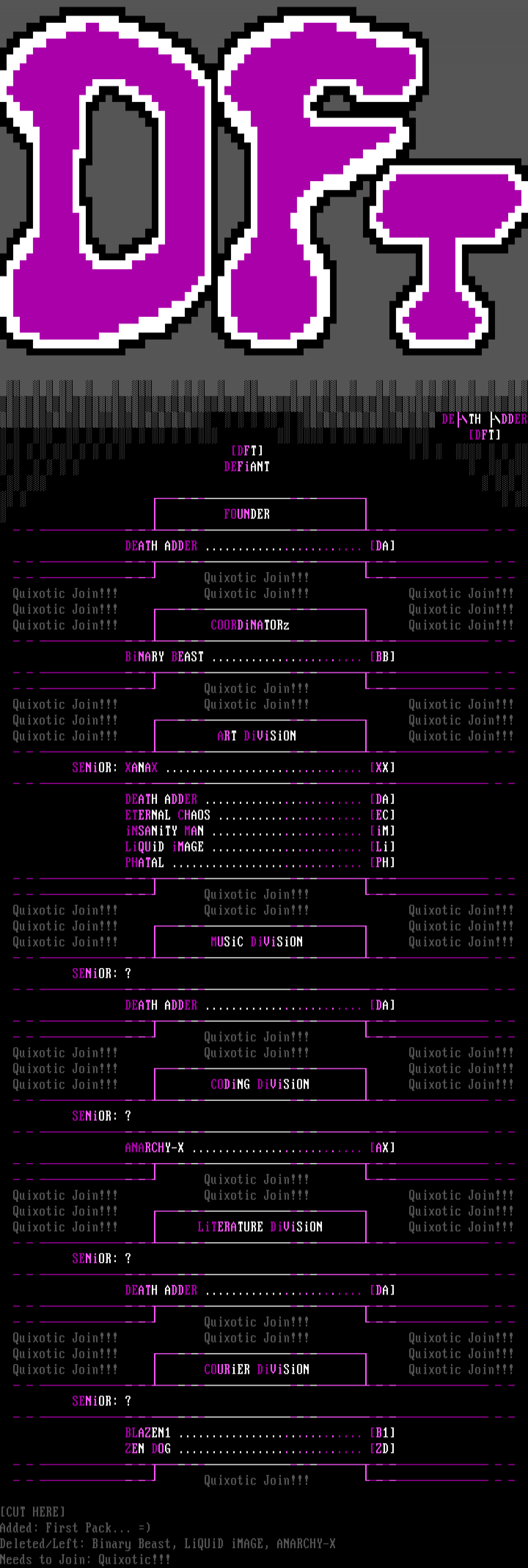 Deleted/Left: Binary Beast, LiQUiD iMAGE, ANARCHY-X