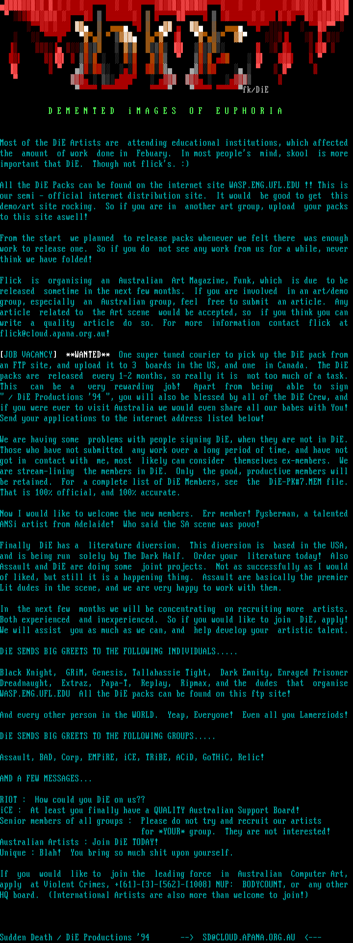Sudden Death / DiE Productions 94 -- SD@CLOUD.APANA.ORG.AU ---
