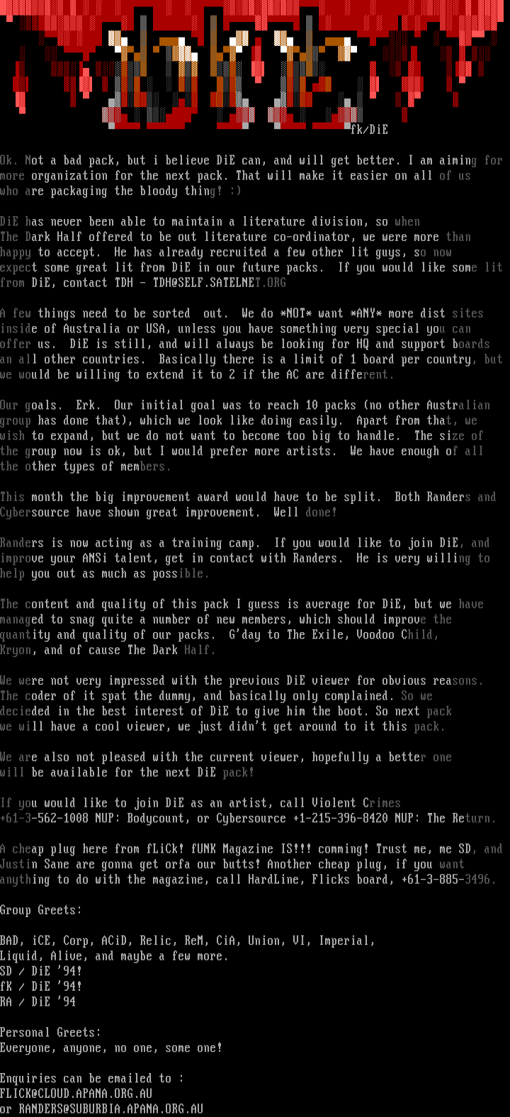 from DiE, contact TDH - TDH@SELF.SATELNET.ORG