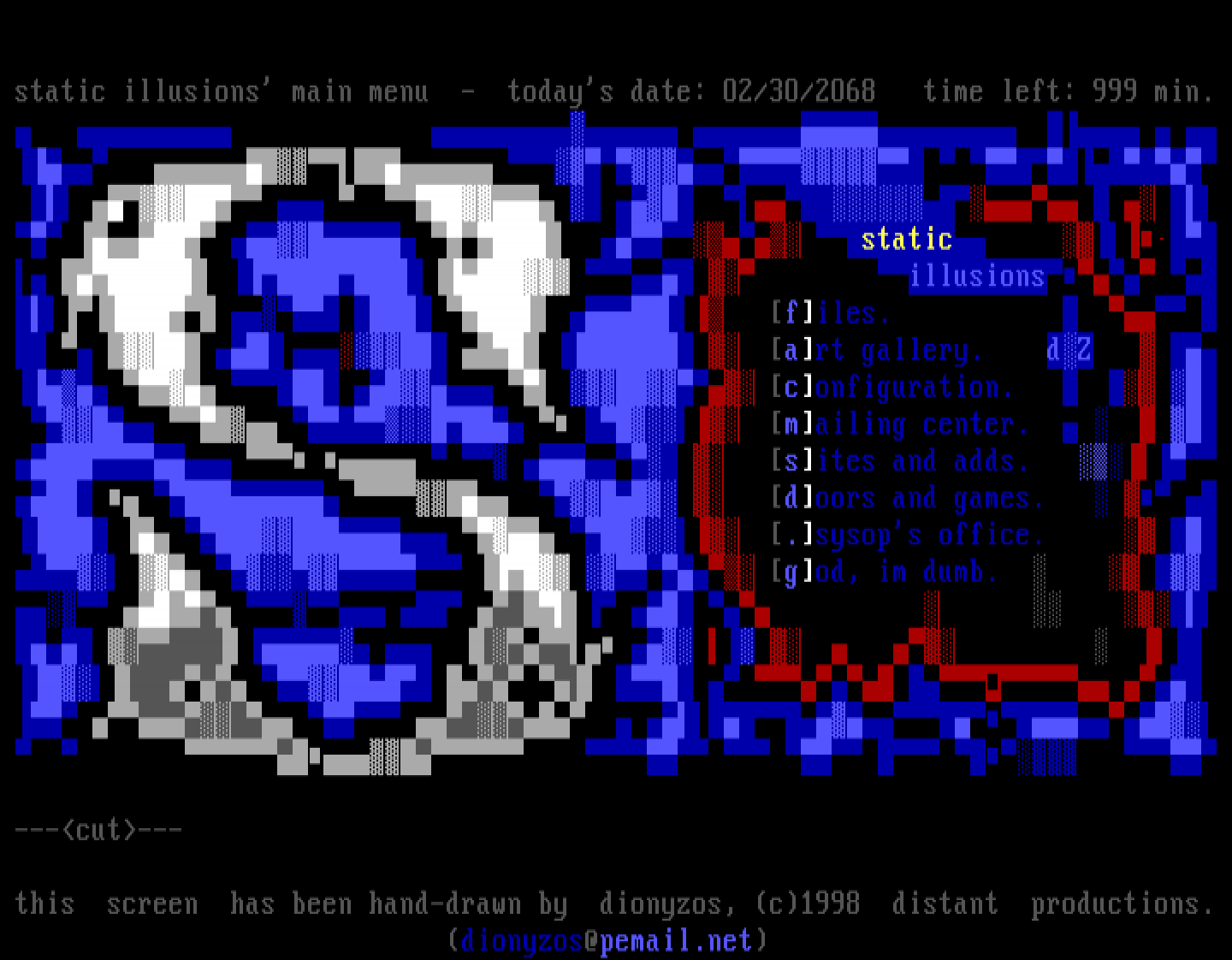 this screen has been hand-drawn by dionyzos, c1998 distant productions.
