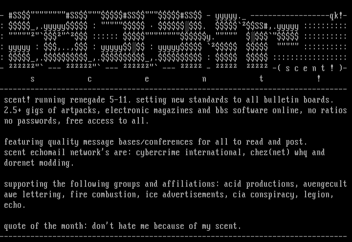 scent echomail networks are: cybercrime international, cheznet whq and