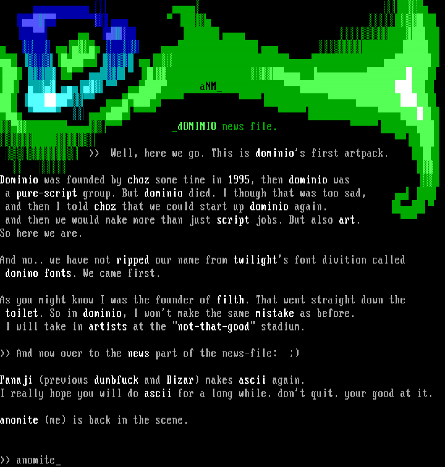 Panaji previous dumbfuck and Bizar makes ascii again.