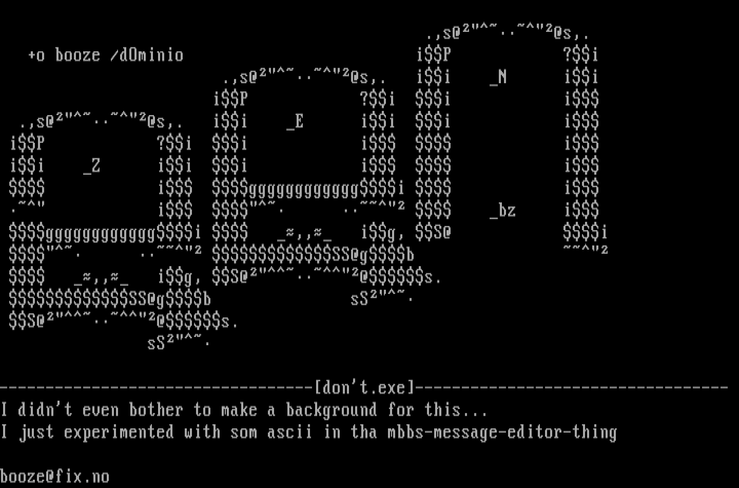 I just experimented with som ascii in tha mbbs-message-editor-thing