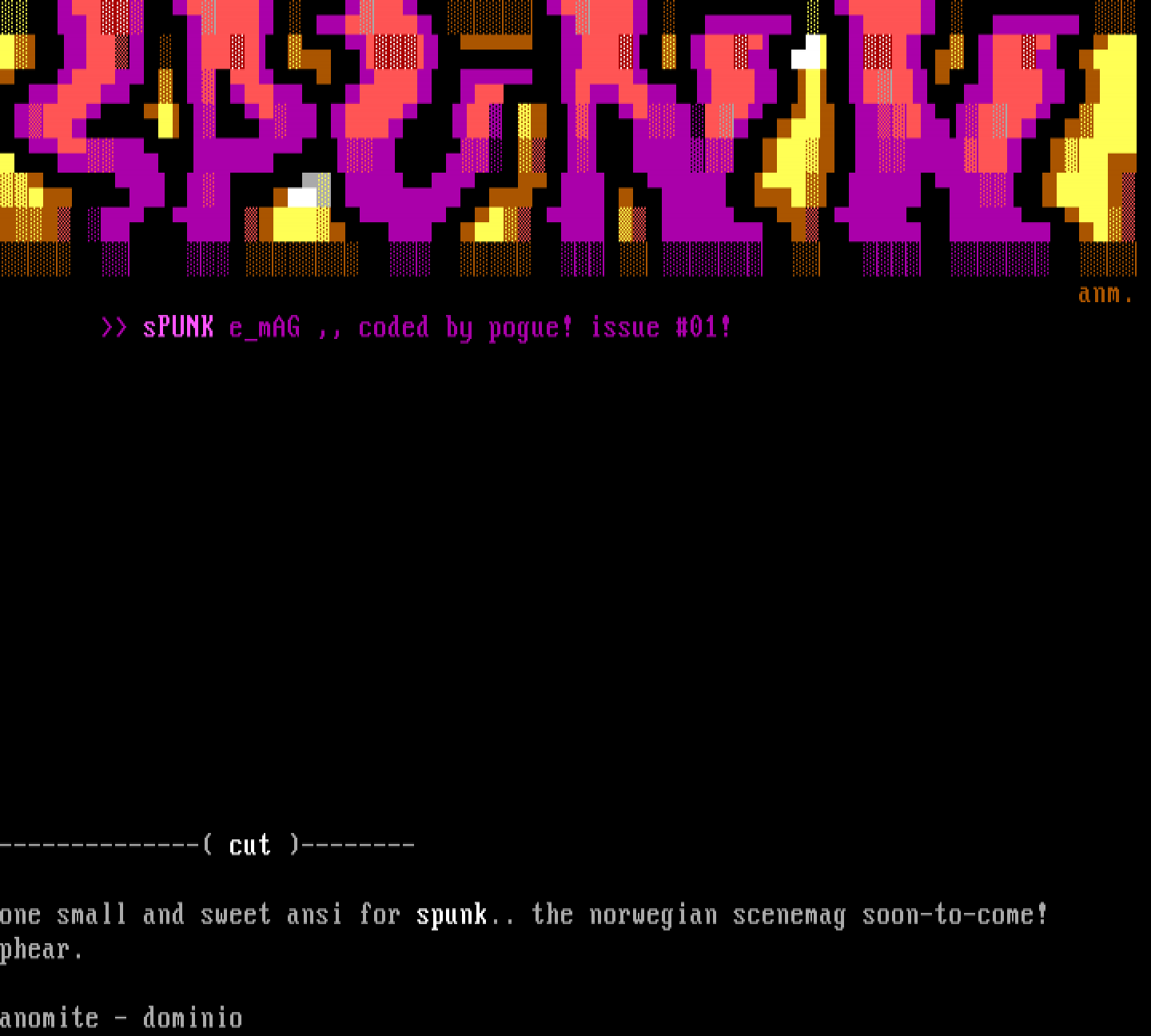 one small and sweet ansi for spunk.. the norwegian scenemag soon-to-come!