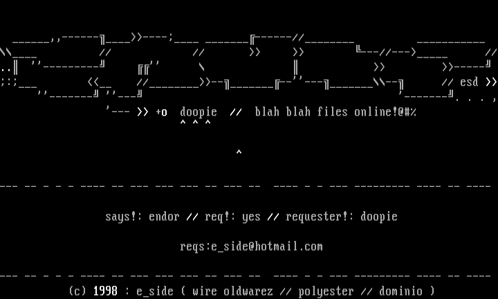 // // ---//--- //.. --------- ----- : //--------- // esd ------- --- -------. . . , --- +o doopie // blah blah files online!@