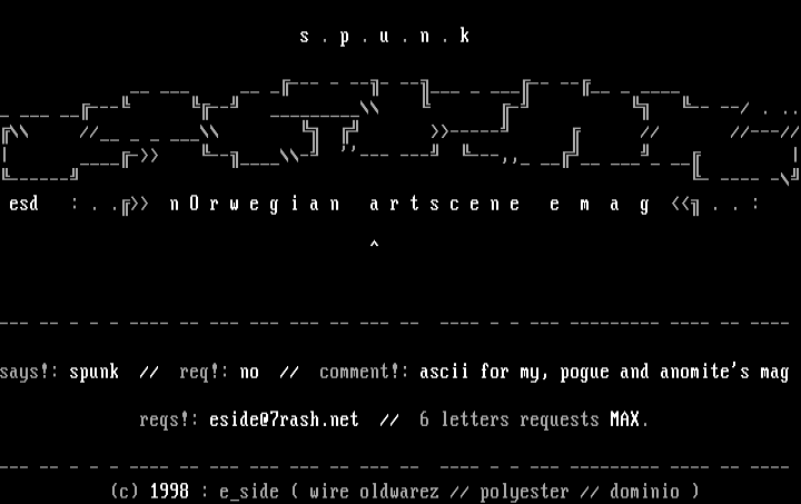 says!: spunk // req!: no // comment!: ascii for my, pogue and anomites mag