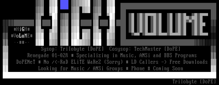 Sysop: Trilobyte DoPE Cosysop: TechMaster DoPE