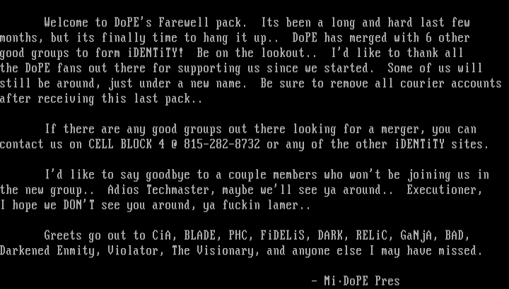 Greets go out to CiA, BLADE, PHC, FiDELiS, DARK, RELiC, GaNjA, BAD,