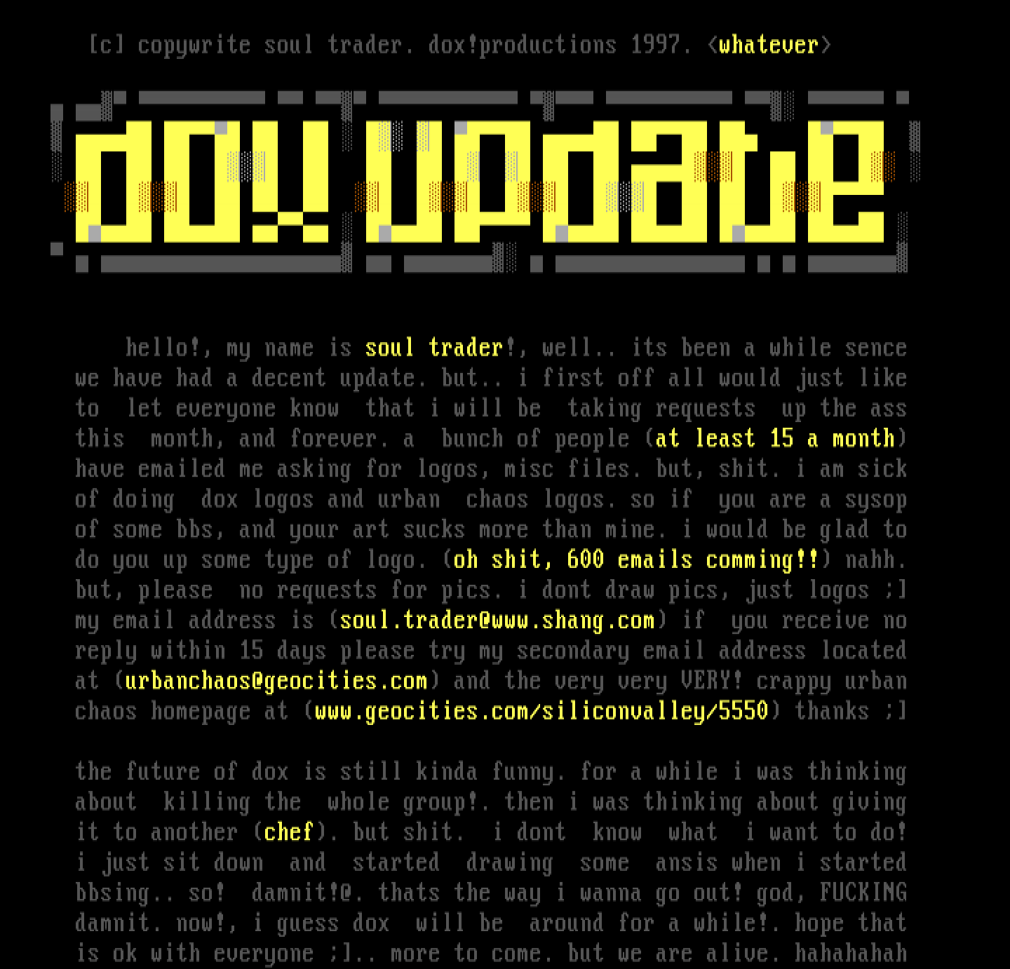 of doing dox logos and urban chaos logos. so if you are a sysop
