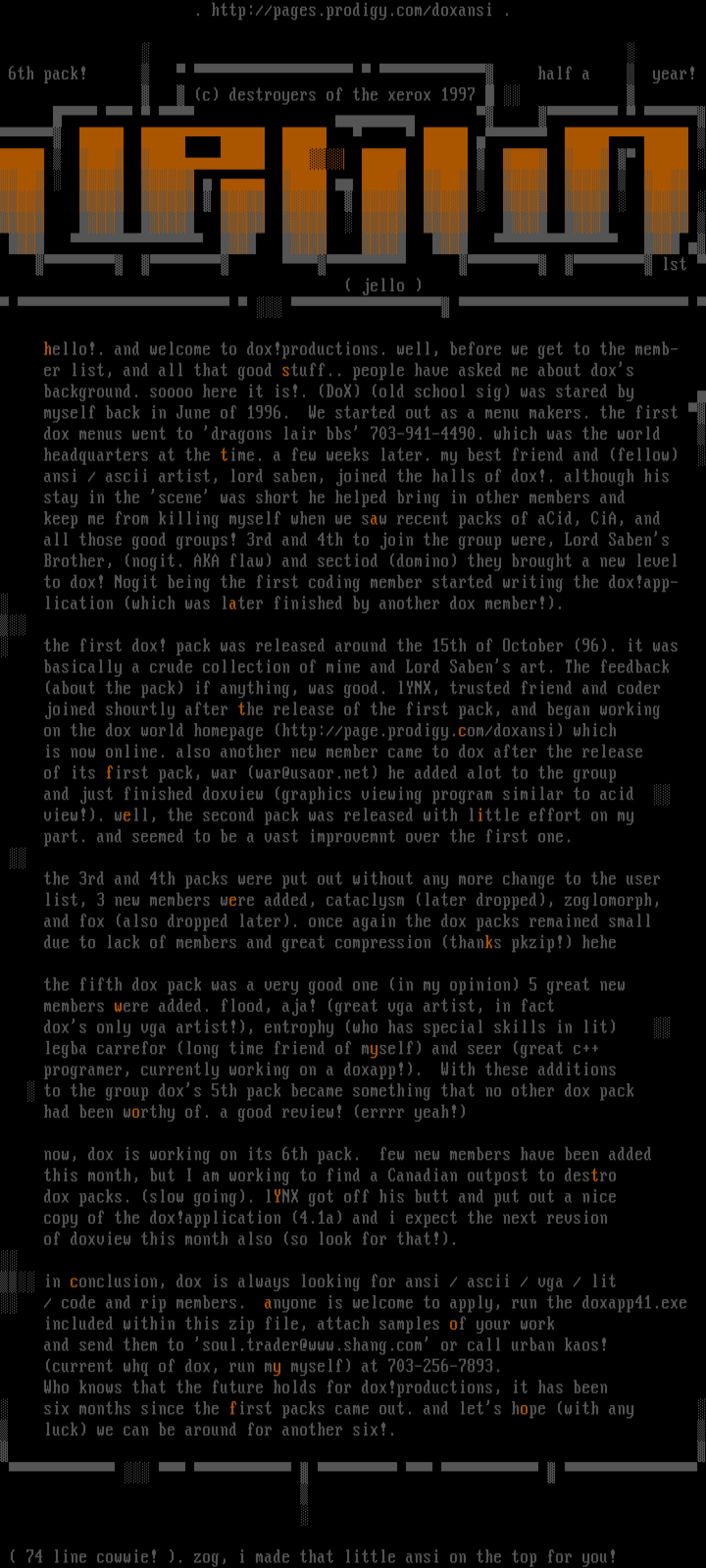 in conclusion, dox is always looking for ansi / ascii / vga / lit
