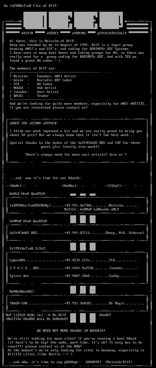 Special thankx to the dudez of the JuSt4CHaOS BBS and COP for three