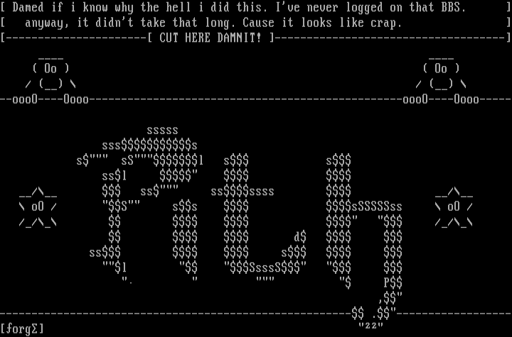 Damed if i know why the hell i did this. Ive never logged on that BBS. anyway, it didnt take that long. Cause it looks like crap. ---------------------- CUT HERE DAMNIT! ------------------------------------