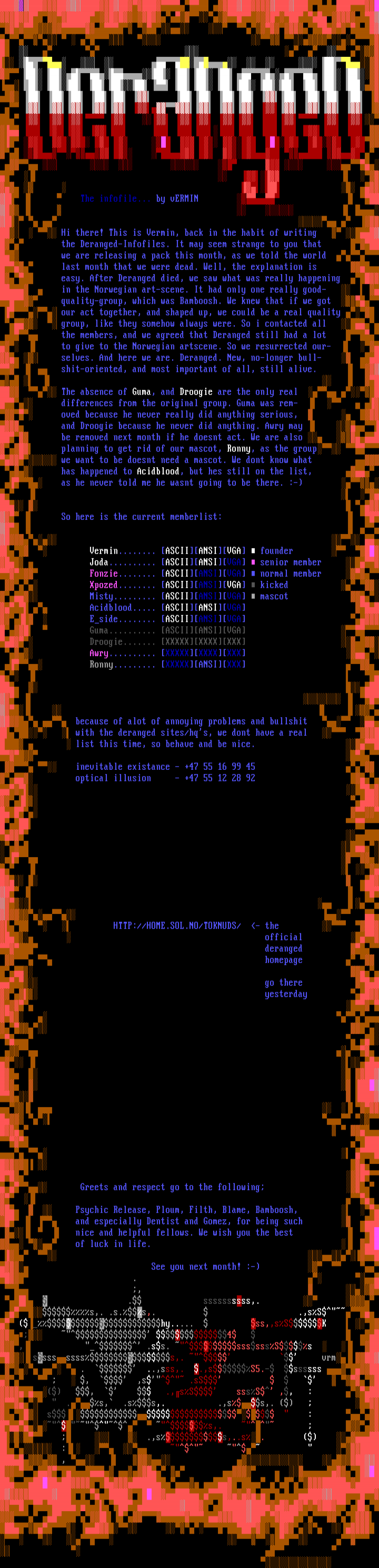 group, like they somehow always were. So i contacted all the members, and we agreed that Deranged still had a lot to give to the Norwegian artscene. So we resurrected our-