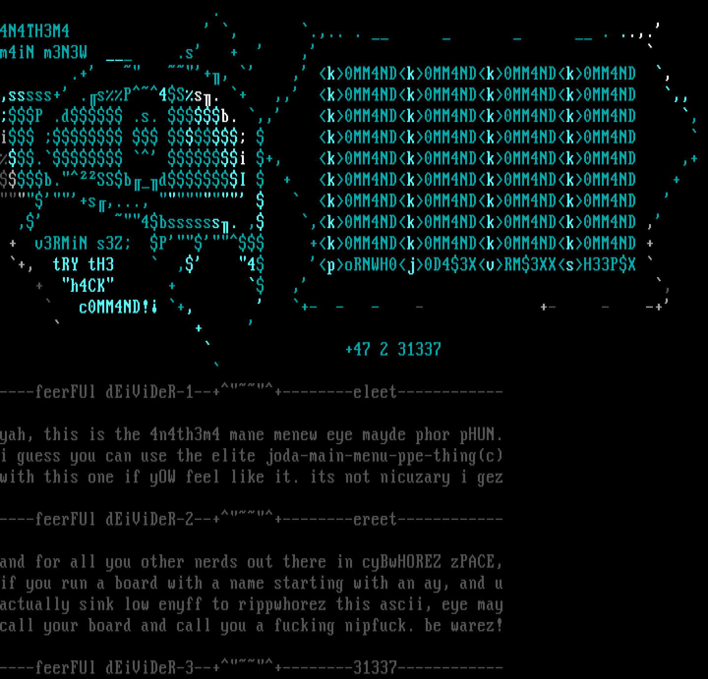 yah, this is the 4n4th3m4 mane menew eye mayde phor pHUN.