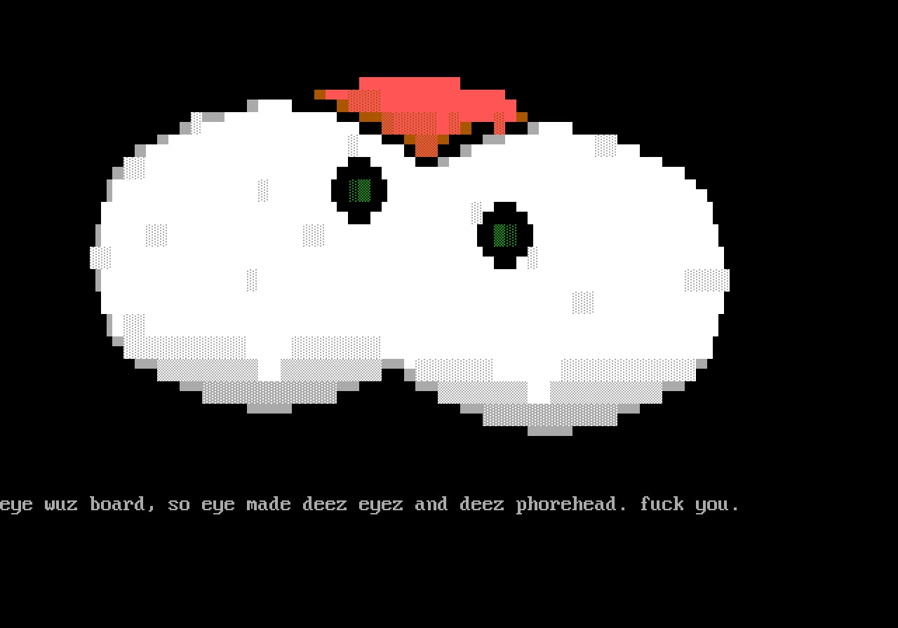eye wuz board, so eye made deez eyez and deez phorehead. fuck you.