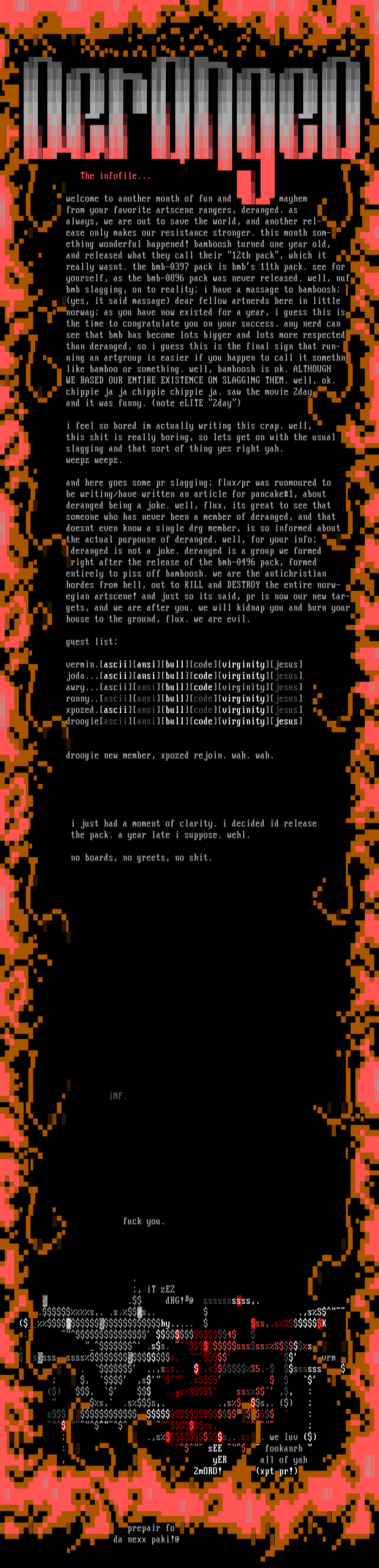 from your favorite artscene rangers, deranged. as always, we are out to save the world, and another rel-