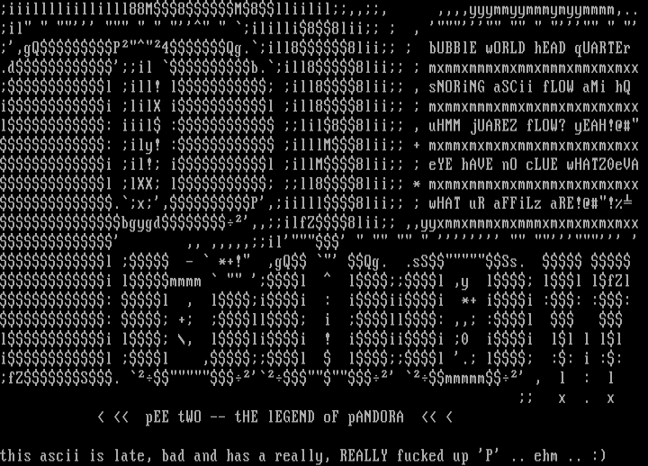 this ascii is late, bad and has a really, REALLY fucked up P .. ehm .. :