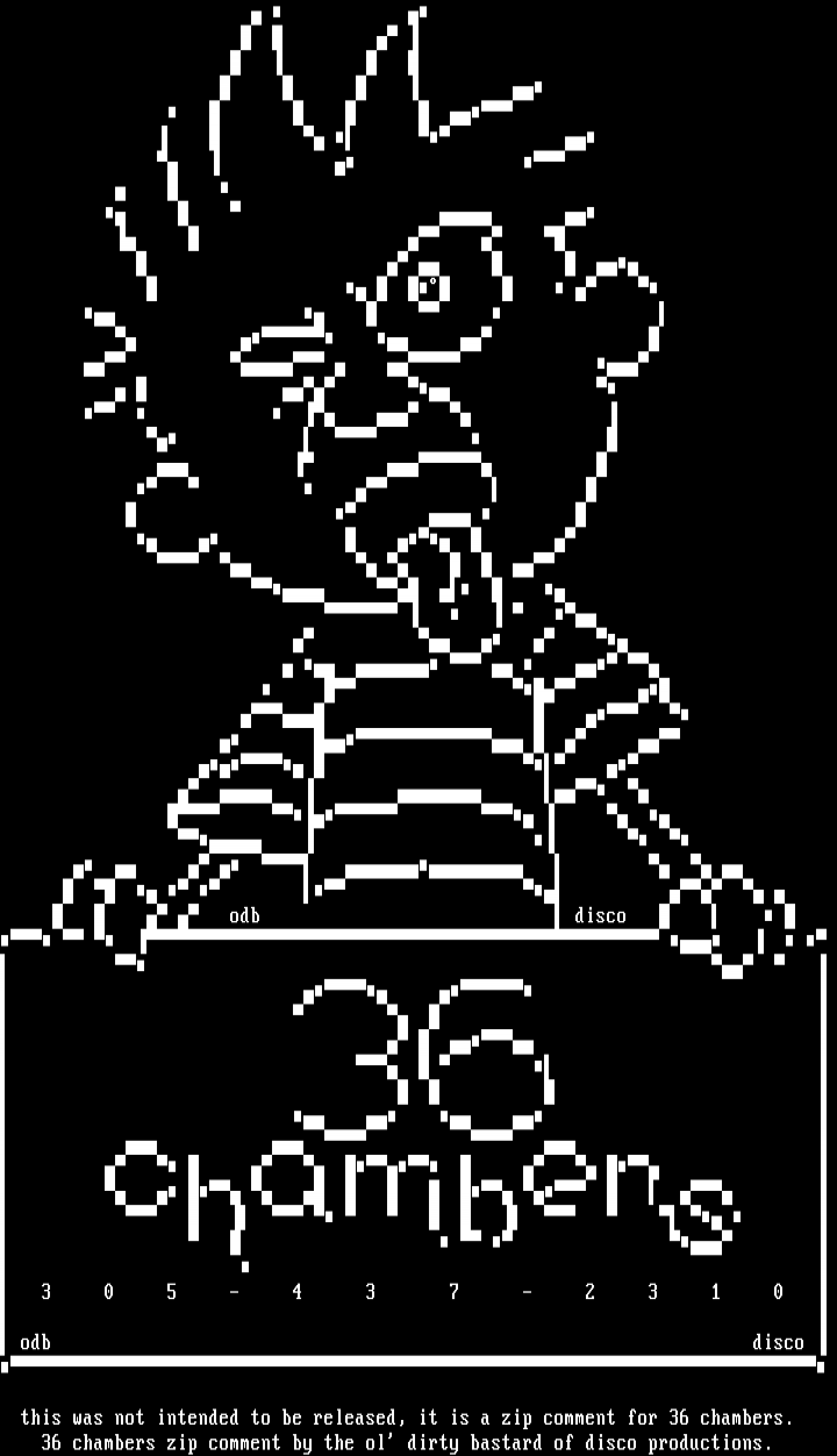 36 chambers zip comment by the ol dirty bastard of disco productions.