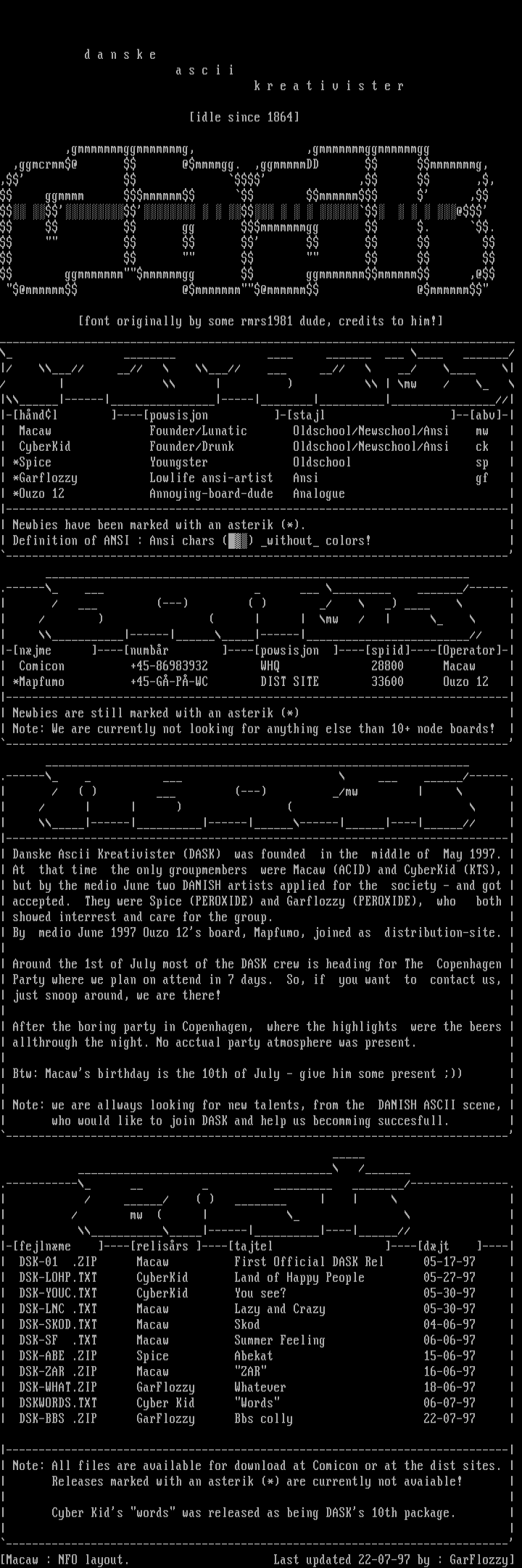 Note: we are allways looking for new talents, from the DANISH ASCII scene,