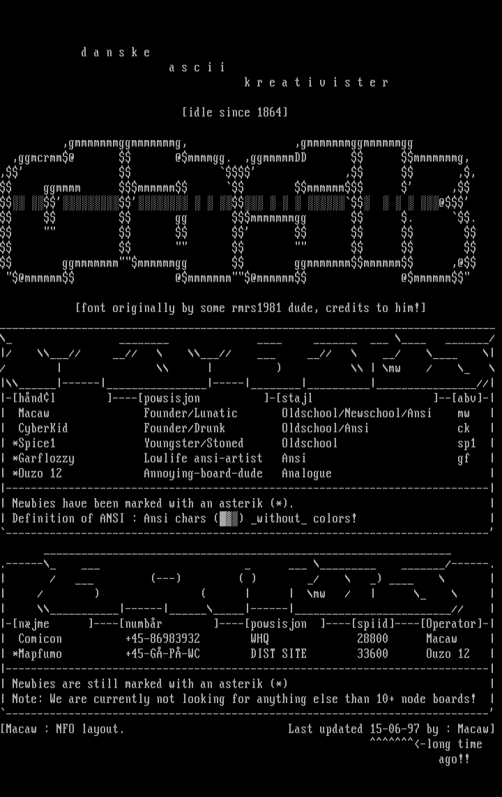 Macaw : NFO layout. Last updated 15-06-97 by : Macaw