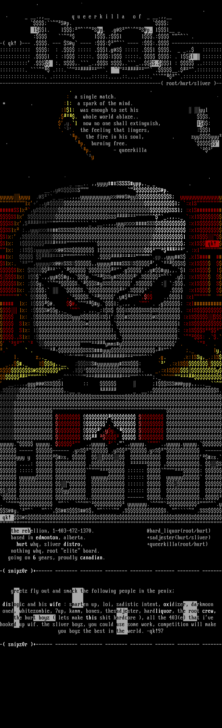 . . SSSSyyy . ly. l. z,. .g. .:lSSy,.lS .,. lSy,. SSSyyyyyyyySSS: .:lSSS@S .ll. .:lSy .. ...,,ggg@@@SSSl :: lSSS@@@ppp,,....S,. .,S.SSSSSSSSSSSS . .yy. yyyyy. yyyyy. .,yyyyy..,yyyyy..,yyyyy.yyyyy. ----- ------ .yS .yS.yS ------yyy y s, s. ....: , ,. S ::::: :::::: : yyyyyy yyyyyy :::::: yyyyyy :::::: yy :::::: , ,. ------ ,..,. yyyyyyy..yS@y. ,S@SS@S, ,SS. .SSS qk! S@SSSSSS the rebellion, 1-403-472-1370. @hardliquorroot/hurt