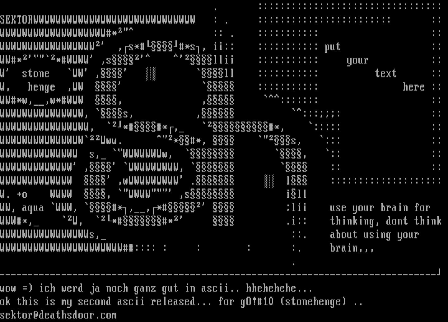ok this is my second ascii released... for gO!10 stonehenge ..