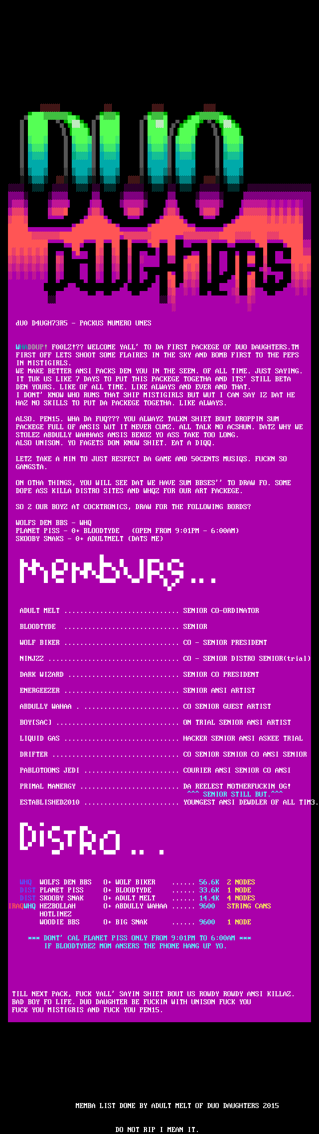 WHADDUP! F00LZ!?? WELCOME YALL TO DA FIRST PACKEGE OF DUO DAUGHTERS.TM