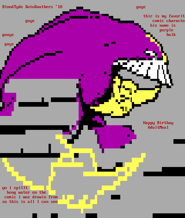 BloodTyde DutoDauthers 18guyzthir is my favoritguyz comic charactehis name ispurpleguuyzhulkgayz Happy Birthay AdultMeal