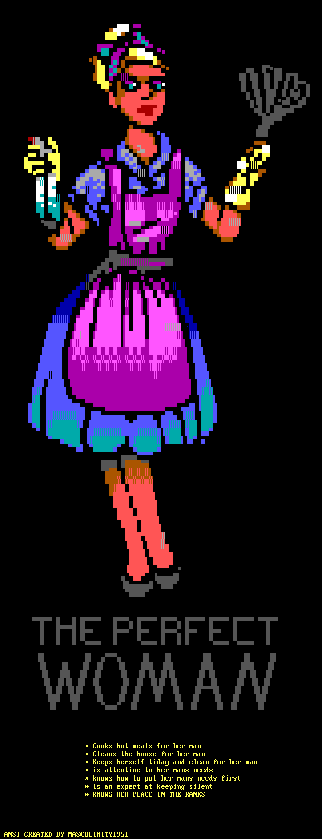 * Cleans the house for her man