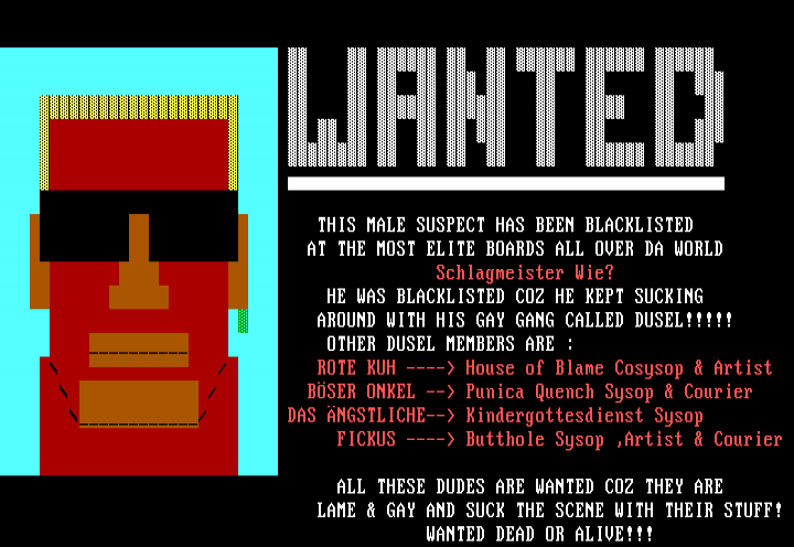 / BSER ONKEL -- Punica Quench Sysop Courier / DAS NGSTLICHE-- Kindergottesdienst Sysop FICKUS ---- Butthole Sysop ,Artist Courier