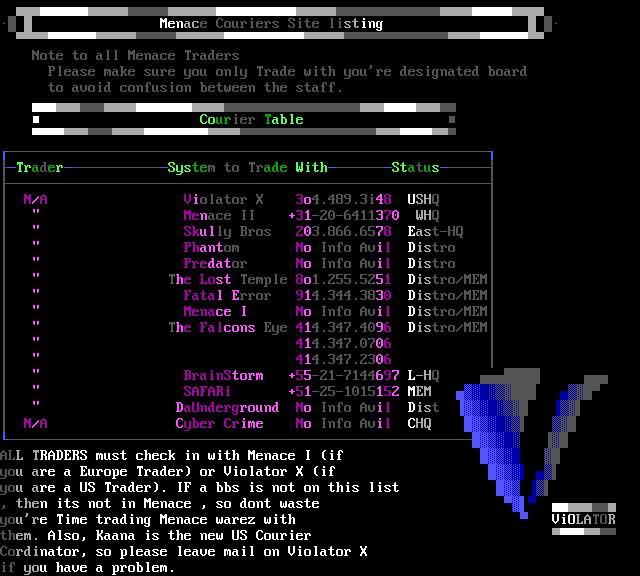 youre Time trading Menace warez with ViOLATOR