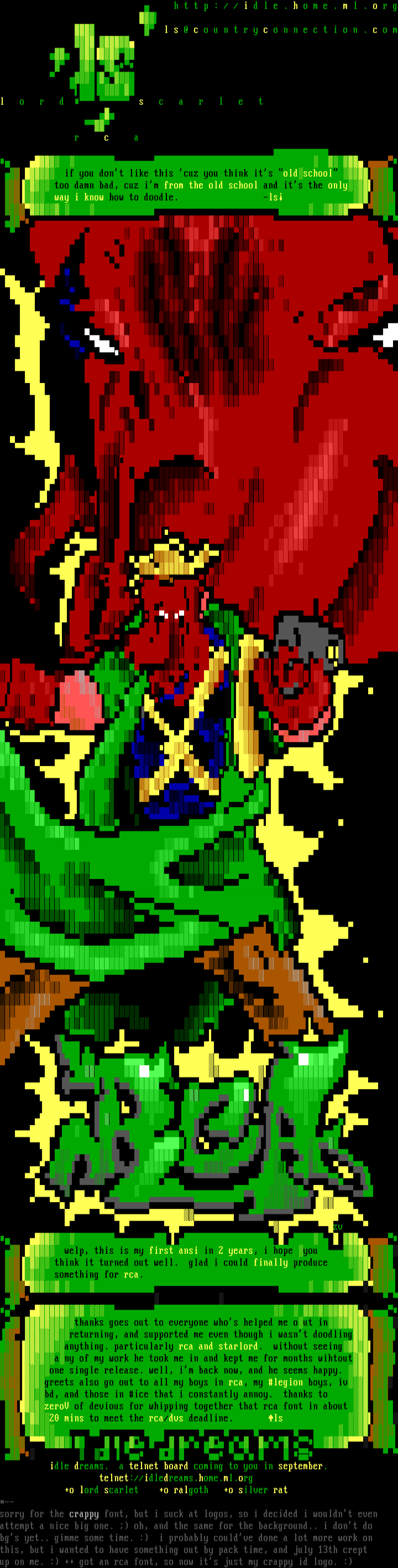 20 mins to meet the rca/dvs deadline. ls idle dreams. a telnet board coming to you in september.