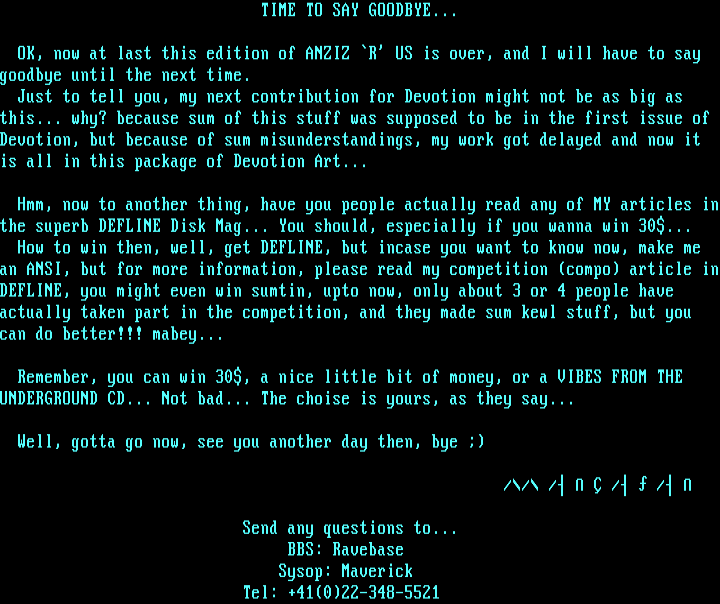 Hmm, now to another thing, have you people actually read any of MY articles inthe superb DEFLINE Disk Mag... You should, especially if you wanna win 30...