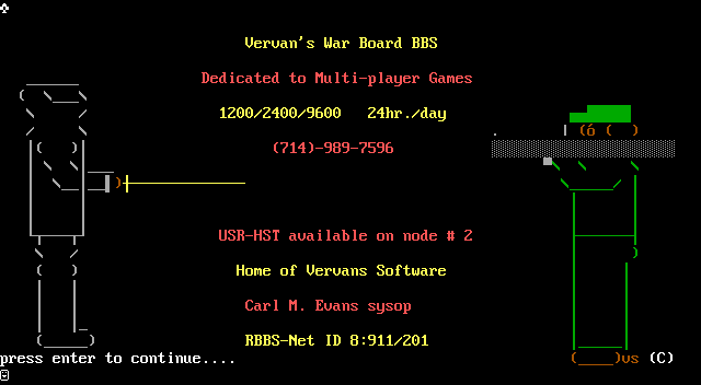 VervansWarBoardBBS DedicatedtoMulti-playerGames / 1200/2400/9600 24hr./day