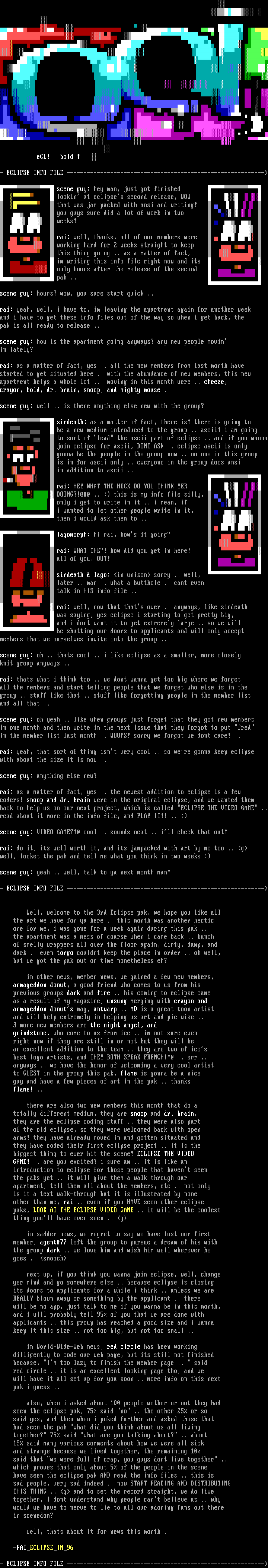 to sort of lead the ascii part of eclipse .. and if you wanna join eclipse for ascii, DONT ASK .. eclipse ascii is only