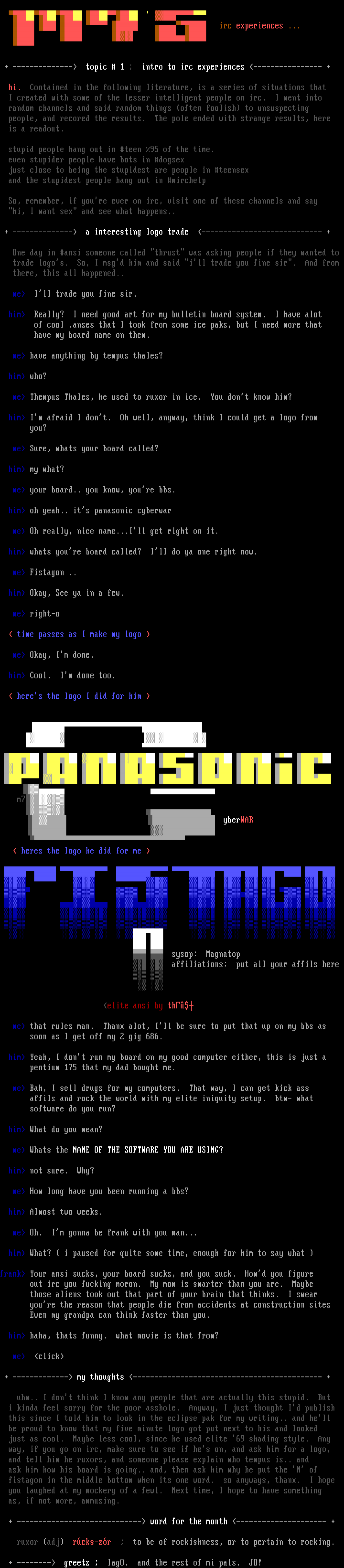 frank Your ansi sucks, your board sucks, and you suck. Howd you figure