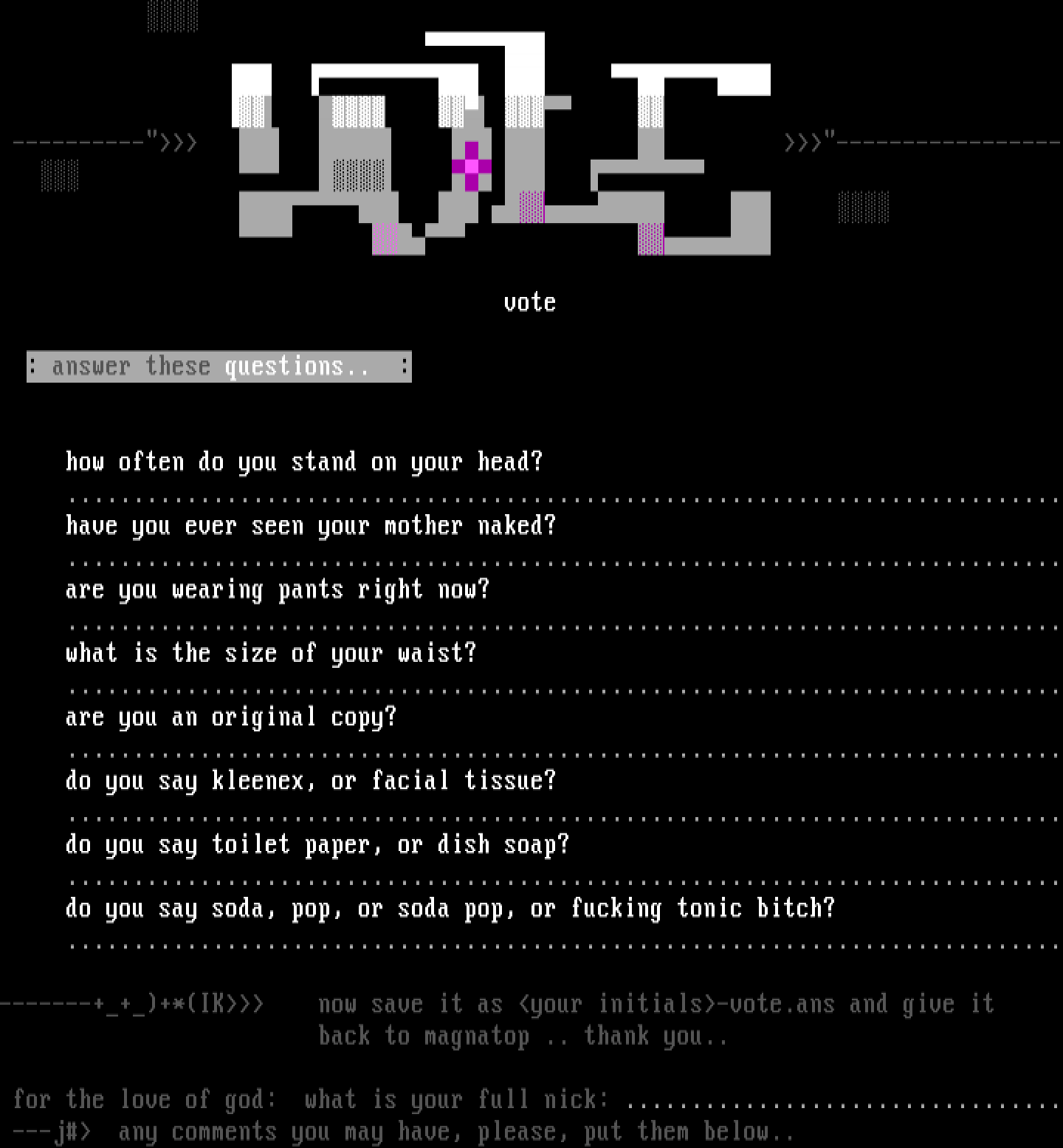 -------+++*IK now save it as your initials-vote.ans and give it