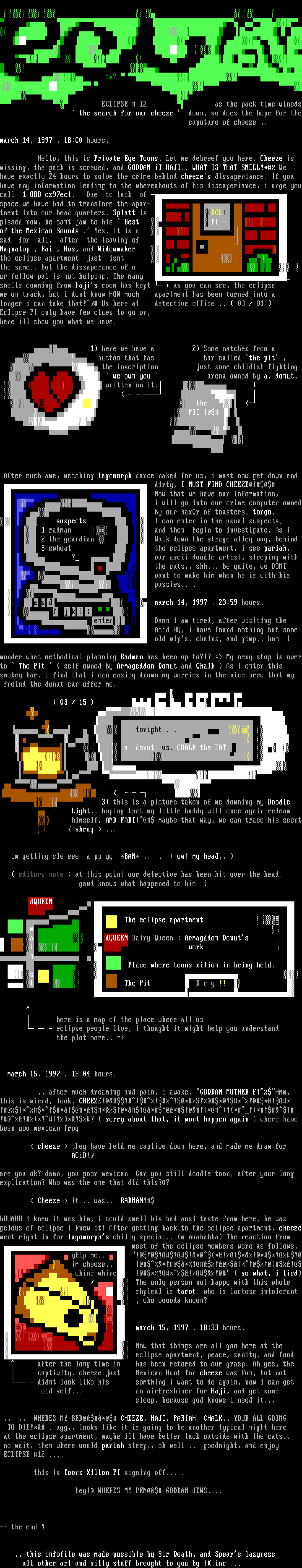 ECLIPSE 12 as the pack time wineds the search for our cheeze down, so does the hope for the caputure of cheeze ..