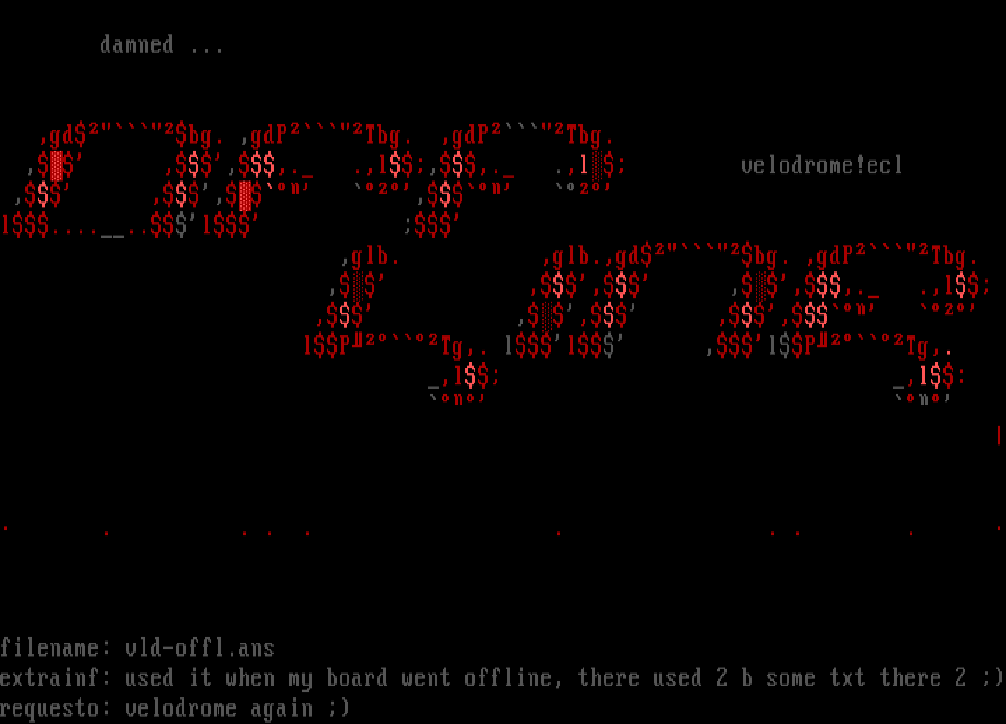 extrainf: used it when my board went offline, there used 2 b some txt there 2 requesto: velodrome again