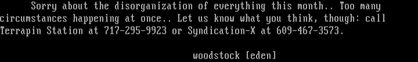 Terrapin Station at 717-295-9923 or Syndication-X at 609-467-3573.