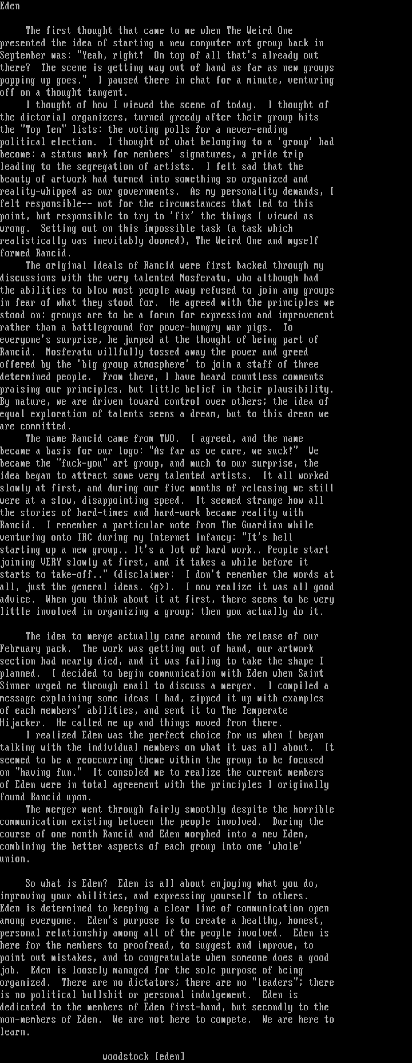 dedicated to the members of Eden first-hand, but secondly to the