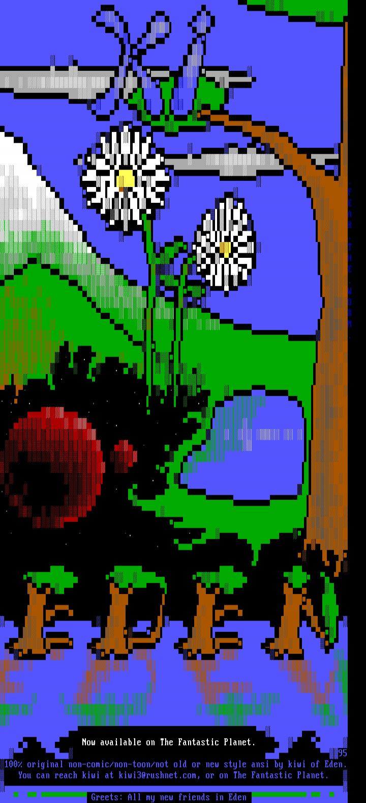 100 original non-comic/non-toon/not old or new style ansi by kiwi of Eden.